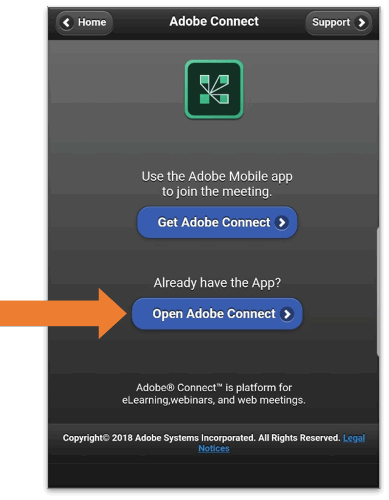با زدن روی Open Adobe Connect وارد کلاس شوید.